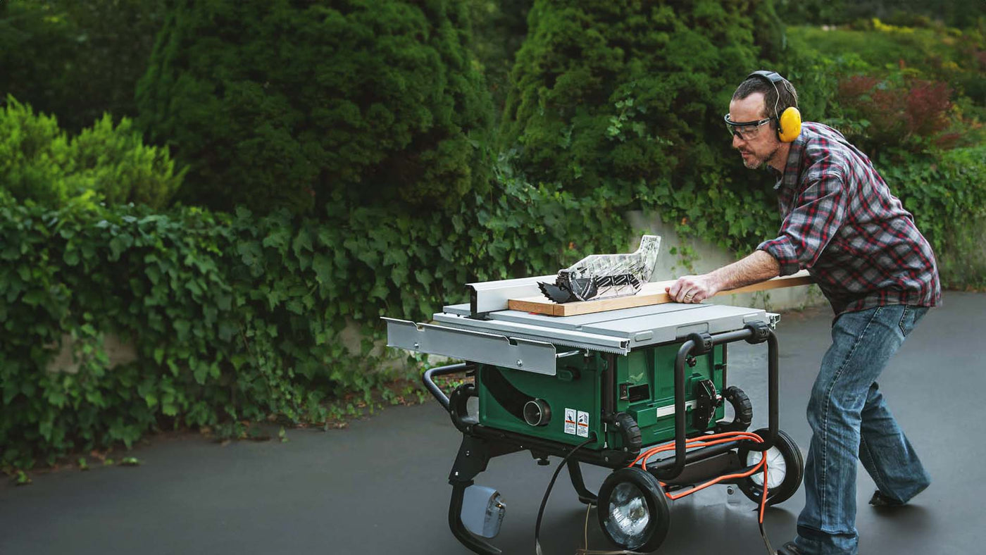 Sierra de mesa portatil de 10" y 15 Amp con soporte plegable con ruedas DeWalt DWE7491RS