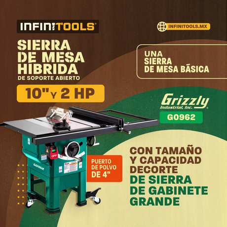 Sierra de mesa híbrida de soporte abierto de 10" y 2 HP Grizzly G0962