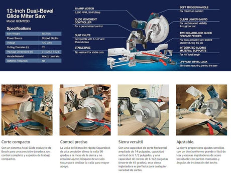 Sierra ingletadora compuesta deslizante de doble bisel de 12" Bosch GCM12SD