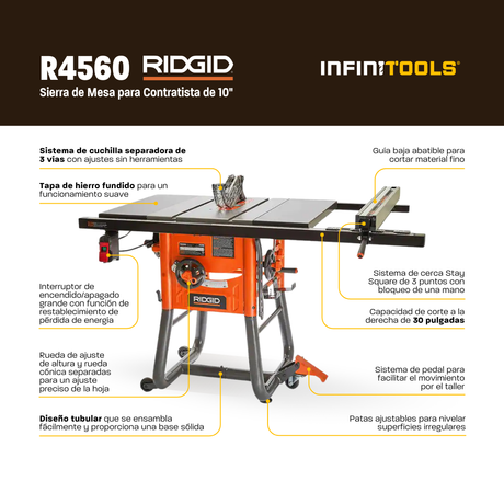 Sierra de Mesa para Contratista de 10" con Tapa de Hierro Fundido RIDGID R4560