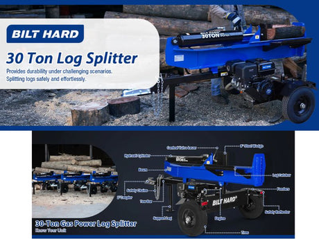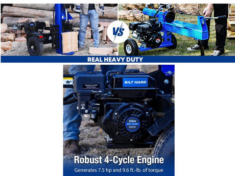 Cortadora de troncos leña de 30 Ton con motor de 7.5 HP 223 CC Bilt Hard
