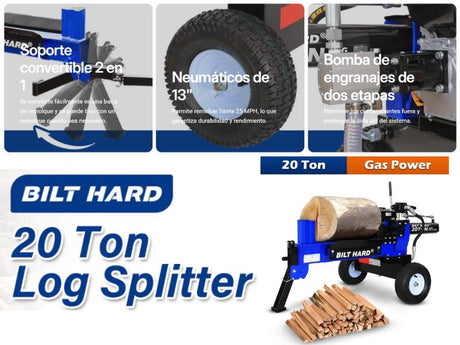 Cortadora de troncos leña de 20 ton con motor OHV 7 HP 209 CC Bilt hard