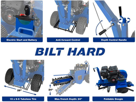 Zanjadora a gasolina de 24" con motor Ducar de 15 HP 420 CC Bilt Hard