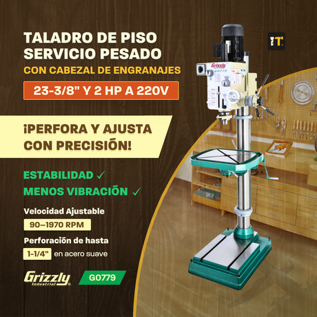 Taladro de piso de servicio pesado de 23-3/8" con cabezal de engranajes Grizzly G0779