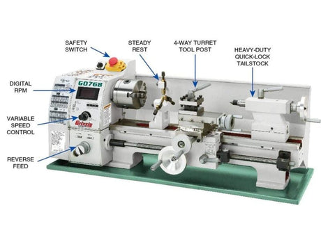 Mini torno para metal de 7" x 12" de velocidad variable Grizzly G8688