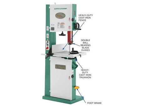 Sierra de cinta de 17" y 2 HP con muñón de hierro fundido y freno de pie Grizzly G0513X2BF