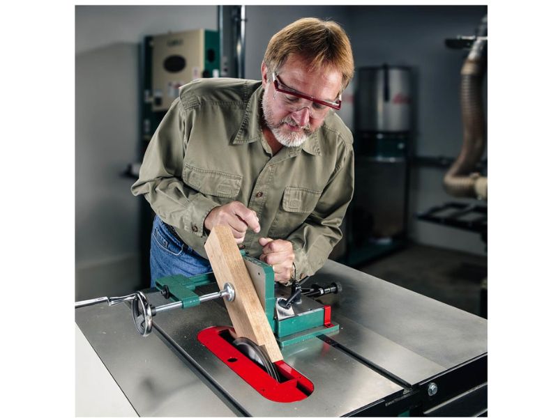 Una plantilla para espigar facilita el corte de espigas en una sierra de mesa, que son importantes en muchas uniones de carpintería, como las uniones de mortaja y espiga.