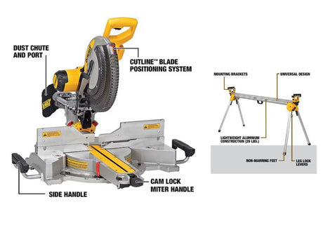 Sierras ingleteadoras deslizables con doble bisel, láser y LED para cortes precisos.