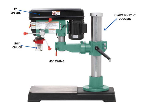 Taladro de columna radial de banco de 34" y 1/2 HP Grizzly G7945