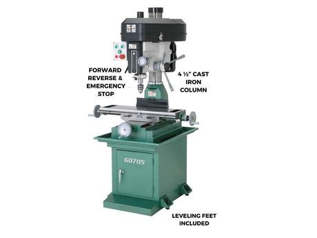 Taladro fresadora de 8" x 29" y 2 HP con soporte Grizzly G0705
