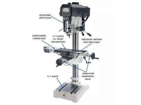 Taladro de columna de 16" con mesa de deslizamiento transversal y avance automático Grizzly G0810